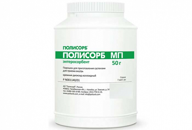 Полисорб® МП (медицинский пероральный) — неорганический, неселективный, полифункциональный энтеросорбент на основе высокодисперсного кремнезема с размерами частиц до 0,09 мм, с химической формулой SiO2. Сорбционная емкость препарата при внутреннем употреблении равна 300 м2/г.