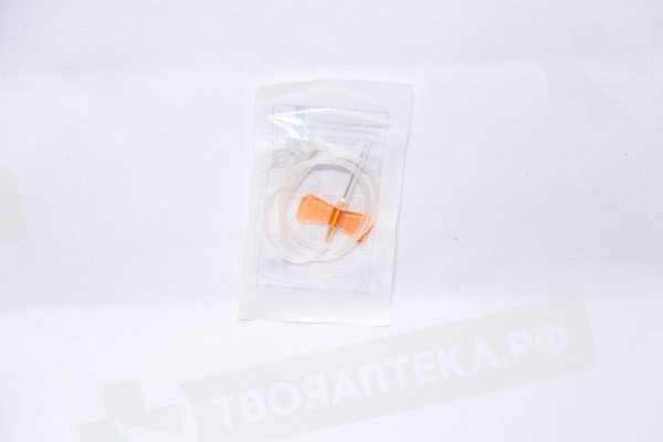 размер __G (0,80х19мм) с мягкими пластмассовыми крыльями, стерильно, одноразовое, игла с двойной заточкой изготовлена из прочной хирургической стали, игла обработана силиконовой смазкой, длина иглы 192 мм.