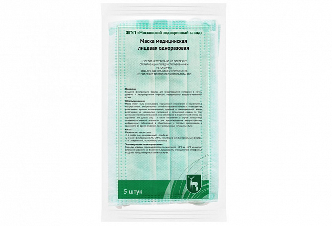 Маска медицинская является нестерильным одноразовым медицинским изделием, имеет вшитый гибкий носовой зажим, снабжена эластичными ушными петлями. Создает фильтрующий барьер для предотвращения попадания в органы дыхания и препятствует распространению инфекций, передающихся воздушно-капельным путем. Маска может быть использована медицинским персоналом и пациентами в стационарах, амбулаторных, лечебно-профилактических учреждениях, а также лицами по роду деятельности имеющими высокий риск заболевания в эпидемический период или заражения им других лиц, в общественных и торговых организациях, в транспорте, во время эпидемий, при чрезвычайных ситуациях, в быту.
