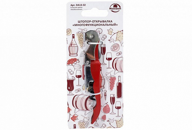 Штопор-открывалка Многофункциональный DA13-32 представляет собой универсальный инструмент, который сочетает в себе функции штопора, открывалки для бутылок и других полезных аксессуаров. Изготовленный из высококачественных материалов, этот инструмент отличается прочностью и долговечностью, обеспечивая надежную работу в любых условиях. Его компактный и эргономичный дизайн обеспечивает комфортное использование и легкость в хранении.