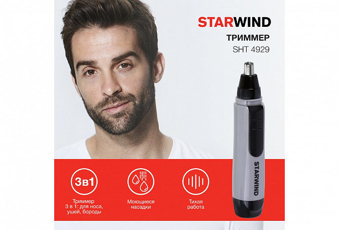 Триммер STARWIND SHT 4929 – удобное и компактное устройство для удаления волосков в труднодоступных местах. Производитель уделил внимание безопасности, производя манипуляцию даже самостоятельно, вы не рискуете повредить чувствительную слизистую носа. Поддержание эстетичного внешнего вида лица не представляет особых проблем.