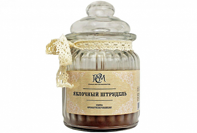 Ароматизированная свеча в банке с аппетитным ароматом яблочного штруделя. Хлопковый фитиль обеспечивает мягкое и ровное горение, наполняя помещение яблочным ароматом. Свеча имеет удобную крышку, с помощью которой можно потушить свечу без дыма. Крышка позволит хранить свечу бережно, избегая образования пыли. Время горения - 45 часов. Диаметр 8 см, высота банки 13 см.