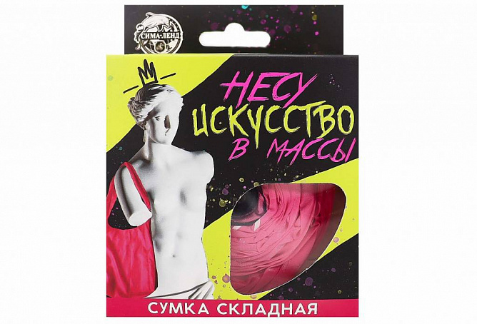 Складная конструкция сумки позволяет легко сложить её до компактных размеров, что делает её удобной для хранения и переноски. Вы можете всегда держать её под рукой в сумке, рюкзаке или кармане и использовать при необходимости. Розовый цвет сумки добавляет яркости и позитивного настроения в ваш повседневный образ. Оригинальный принт с надписью «Несу искусство в массы» подчёркивает вашу индивидуальность и любовь к искусству, делая эту сумку не только полезным, но и стильным аксессуаром.