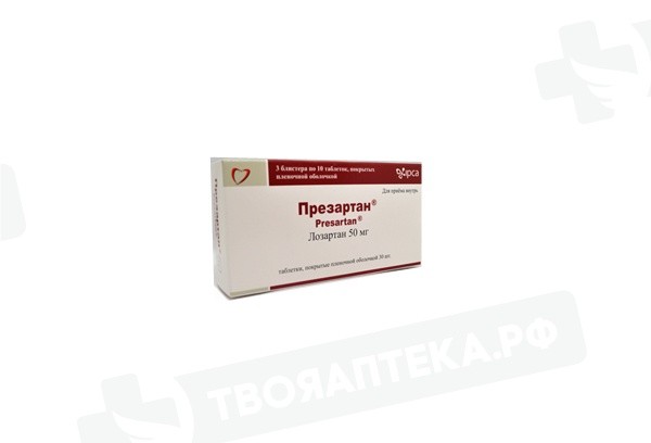 Презартан 50 мг таблетки покрытые пленочной оболочкой N30