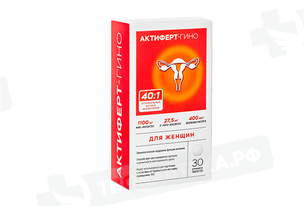 Специализированный комплекс АКТИФЕРТ-ГИНО создан для женщин с целью улучшения функционального состояния репродуктивной системы, восстановления менструального цикла и овуляций. Может использоваться при подготовке к беременности. КОМПОНЕНТЫ Актиферт-Гино: ФОЛИЕВАЯ КИСЛОТА. Относится к витаминам группы В, снижает риск развития дефектов нервной трубки плода и других пороков развития, также фолиевая кислота необходима для нормального формирования плаценты. Фолаты предотвращают женскую дисменорею, сопровождающуюся болями внизу живота во время месячных, улучшают женское либидо, служат профилактикой фригидности, снижают риск развития послеродовых депрессий. ИНОЗИТ (ФРАКЦИИ МИО-ИНОЗИТОЛ И D-ХИРО-ИНОЗИТОЛ 40:1). Важные компоненты для женского здоровья: улучшают женскую фертильность, восстанавливают чувствительность тканей к инсулину в случаях резистентности, активируют липидный обмен, снижают гиперандрогению при СПКЯ, уменьшают симптомы ПМС, снижают тревожность и аппетит, восстанавливают менструальный цикл и овуляции, а совместно с фолиевой кислотой повышают частоту наступления беременности. В нескольких рандомизированных исследованиях было показано, что приём препаратов с D-хиро-инозитолом способствовал статистически достоверному снижению характерных симптомов синдрома поликистозных яичников (СПКЯ): снижались уровни общего и свободного тестостерона, нормализовалось артериальное давление, улучшалась чувствительность к инсулину и увеличивалась частота овуляций.
