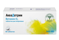 Избегать передозировки. Индивидуальное обеспечение определенной потребности должно учитывать все возможные источники этого витамина. Слишком высокие дозы витамина D3, применяемые продолжительно или ударные дозы, могут быть причиной хронического гипервитаминоза D3. Определение суточной потребности ребенка в витамине D и способа его применения должны устанавливаться врачом индивидуально и каждый раз подвергаться коррекции во время периодических обследований, особенно в первые месяцы жизни. При достижении адекватного уровня концентрации витамина D в крови (>30 нг/мл 25(ОН)D) у взрослых возможно продолжение поддерживающей терапии препаратом Аквадетрим® в дозе 1500 — 2000 МЕ (3-4 капли) в сутки. Не применять одновременно с витамином D3 высоких доз кальция. Во время лечения необходим периодический контроль концентрации фосфатов в крови и моче. При длительном приеме колекальциферола необходимо регулярно определять уровень кальция в сыворотке крови и моче, а также оценивать функцию почек путем измерения сывороточного уровня креатинина. При необходимости, следует корректировать дозу колекальциферола в зависимости от уровня кальция в сыворотке крови.