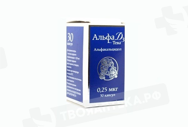 Альфа Д3-Тева - витамин, регулятор кальциево-фосфорного обмена. Является предшественником активного метаболита витамина D3 - кальцитриола. Повышает абсорбцию кальция и фосфора в кишечнике, увеличивает их реабсорбцию в почках, восстанавливает положительный кальциевый баланс при лечении синдрома кальциевой мальабсорбции, снижает содержание в крови паратиреоидного гормона. Воздействуя на обе части процесса костного ремоделирования (резорбцию и синтез), альфакальцидол не только увеличивает минерализацию костной ткани, но и повышает ее упругость за счет стимулирования синтеза белков матрикса кости, костных морфогенетических белков, факторов роста кости, что способствует уменьшению частоты развития переломов. У пациентов пожилого возраста на фоне эндокринно-иммунной дисфункции, в том числе дефицита продукции D-гормона (кальцитриола), происходит снижение общей мышечной массы (саркопения) и появление синдрома мышечной слабости (вследствие нарушения нормального функционирования нервно-мышечного аппарата), что сопровождается повышением риска падений и обусловленных этим травм и переломов. В ряде исследований было показано значительное снижение частоты падений пожилых пациентов при использовании альфакальцидола.
