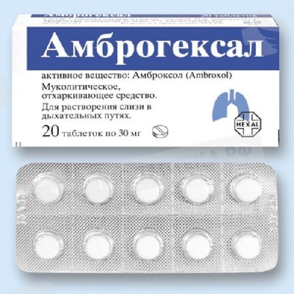 Фармакологическая группа: Отхаркивающее, муколитическое средство. Фармакодинамика: Обладает секретомоторным, секретолитическим и отхаркивающим действием, стимулирует серозные клетки желез слизистой оболочки бронхов, увеличивает содержание слизистого секрета и выделение поверхностно-активного вещества (сурфактанта) в альвеолах и бронхах, нормализует нарушенное соотношение серозного и слизистого компонентов мокроты. Активируя гидролизующие ферменты и усиливая высвобождение лизосом из клеток Клара, снижает вязкость мокроты. Повышает двигательную активность мерцательного эпителия, увеличивает мукоцилиарный транспорт, облегчает выведение мокроты из дыхательных путей. В среднем, эффект при приеме амброксола внутрь наступает через 30 мин и продолжается 6-12 ч, в зависимости от величины разовой дозы.