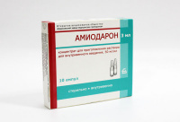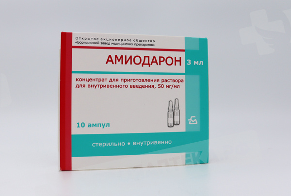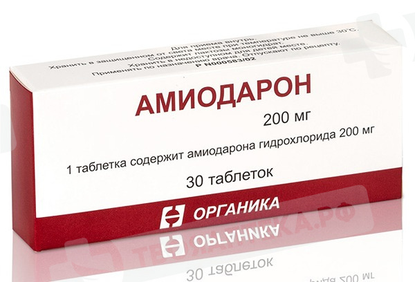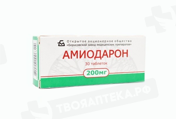 Фармакологическая группа: Антиаритмическое средство. Фармакодинамика: Антиаритмический препарат III класса (ингибитор реполяризации). Обладает также антиангинальным, коронародилатирующим, альфа- и бета-адреноблокирующим, тиреотропным и антигипертензивным действием. Антиаритмическое действие обусловлено влиянием на электрофизиологические процессы миокарда; удлиняет потенциал действия кардиомиоцитов; увеличивает эффективный рефрактерный период предсердий, желудочков, атриовентрикулярного (AV) узла, пучка Гисса и волокон Пуркинье, добавочных путей проведения возбуждения. Блокируя «быстрые» натриевые каналы, оказывает эффекты, характерные для антиаритмиков I класса. Тормозит медленную (диастолическую) деполяризацию мембраны клеток синусового узла, вызывая брадикардию и снижение AV проводимости. Антиангинальный эффект обусловлен коронарорасширяющим и антиадренергическим действием, уменьшением потребности миокарда в кислороде. Оказывает тормозящее влияние на альфа- и бета-адренорецепторы сердечно-сосудистой системы (без полной их блокады). Уменьшает чувствительность к гиперстимуляции симпатической нервной системы, сопротивление коронарных сосудов; увеличивает коронарный кровоток; урежает частоту сердечных сокращений; повышает энергетические резервы миокарда (за счет увеличения содержания креатинсульфата, аденозина и гликогена). По своей структуре подобен тиреоидным гормонам. Содержание йода составляет около 37 % его молекулярного веса. Влияет на обмен тиреоидных гормонов, ингибирует превращение Т4 в ТЗ (блокада тироксин-5-дейодиназы) и блокирует захват этих гормонов кардиоцитами и гепатоцитами, что приводит к ослаблению стимулирующего влияния тиреоидных гормонов на миокард (дефицит ТЗ может привести к его гиперпродукции и тиреотоксикозу). Начало действия (даже при использовании «нагрузочных» доз) - от 2-3 дней до 2-3 месяцев, длительность действия варьирует от нескольких недель до месяцев (определяется в плазме крови на протяжении 9 месяцев после прекращения его приема).