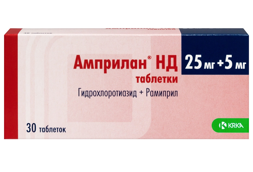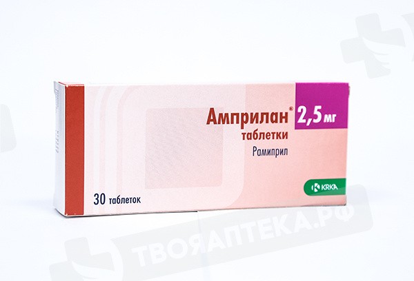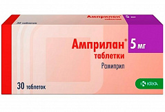 Таблетку следует принимать внутрь независимо от времени приема пищи (то есть, таблетки могут приниматься как до, так и во время или после приема пищи) и запивать достаточным количеством (1/2 стакана) воды. Нельзя разжевывать или измельчать таблетки перед приемом. Доза подбирается в зависимости от терапевтического эффекта и переносимости препарата пациентом. Лечение препаратом Амприлан® обычно является длительным, и его продолжительность в каждом конкретном случае определяется врачом. Если не назначается иначе, то при нормальной функции почек и печени рекомендуются представленные далее режимы дозирования. Артериальная гипертензия в монотерапии или в сочетании с другими гипотензивными препаратами, например, БМКК и диуретиками Обычно начальная доза составляет 2,5 мг 1 раз в сутки утром. Если при приеме препарата Амприлан® в этой дозе в течение 3 недель и более не удается нормализовать АД, то доза может быть увеличена до 5 мг в сутки. При недостаточной эффективности дозы 5 мг через 2-3 недели она может быть еще удвоена до максимальной рекомендуемой суточной дозы – 10 мг. В качестве альтернативы к увеличению дозы до 10 мг в сутки при недостаточной антигипертензивной эффективности суточной дозы 5 мг, возможно добавление к лечению других гипотензивных средств, в частности, диуретиков или БМКК. ХСН, в составе комбинированной терапии, в частности, в комбинации с диуретиками Рекомендованная начальная доза – 1,25 мг 1 раз в сутки. В зависимости от реакции пациента на проводимую терапию доза может увеличиваться. Рекомендуется удваивать дозу с интервалом 1-2 недели. Если требуется прием суточной дозы 2,5 мг и выше, она может применяться как однократно в сутки, так и делиться на два приема. Максимальная рекомендованная суточная доза составляет 10 мг. Диабетическая нефропатия или недиабетическая нефропатия, доклинические и клинически выраженные стадии, в т. ч. с выраженной протеинурией, в особенности при сочетании с артериальной гипертензией Рекомендованная начальная доза – 1,25 мг 1 раз в сутки. Доза может увеличиваться до 5 мг 1 раз в сутки. При данных состояниях дозы выше 5 мг 1 раз в сутки в контролируемых клинических исследованиях изучены недостаточно. Снижение риска развития инфаркта миокарда, инсульта или сердечно-сосудистой смертности у пациентов с высоким сердечно-сосудистым риском Рекомендованная начальная доза – 2,5 мг 1 раз в сутки. В зависимости от переносимости препарата Амприлан® пациентом дозу можно постепенно увеличивать. Рекомендуется удвоить дозу через 1 неделю лечения, а в течение следующих 3-х недель лечения увеличить ее до обычной поддерживающей дозы 10 мг 1 раз в сутки. Применение дозы, превышающей 10 мг в сутки, в контролируемых клинических исследованиях изучено недостаточно. Применение препарата у пациентов с КК менее 0,6 мл/сек изучено недостаточно. Сердечная недостаточность с клиническими проявлениями, развившаяся в течение первых нескольких дней (с 2 по 9 сутки) после острого инфаркта миокарда Начальная доза: лечение может быть начато не ранее чем через 48 часов от момента инфаркта миокарда (предпочтительно с 2 по 9 сутки заболевания) у клинически и гемодинамически стабильных пациентов с клиническими проявлениями сердечной недостаточности. Рекомендованная начальная доза рамиприла составляет 2,5 мг 2 раза в сутки (утром и в