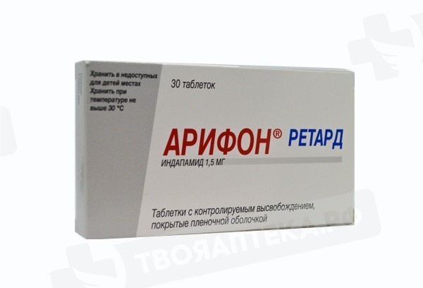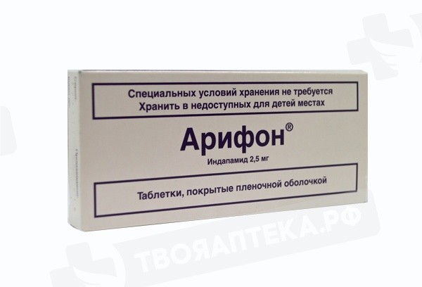 - повышенная чувствительность к активному веществу, другим производным сульфонамида или любому из вспомогательных веществ препарата (см. раздел «Состав»); - тяжелая почечная недостаточность; - тяжелая печеночная недостаточность или печеночная энцефалопатия; - гипокалиемия В связи с тем, что в состав препарата входит лактоза, Арифон® не рекомендуется пациентам с непереносимостью лактозы, дефицитом лактазы, галактоземией, глюкозо-галактозной мальабсорбцией. В связи с отсутствием клинических данных препарат не рекомендуется применять у детей до 18 лет. С ОСТОРОЖНОСТЬЮ Нарушения функции печени и почек, нарушения водно-электролитного баланса, применение у пациентов с увеличенным интервалом QT на ЭКГ, применение у ослабленных пациентов или у пациентов, получающих одновременную терапию с препаратами, которые могут увеличивать интервал QT (см. раздел «Взаимодействие с другими лекарственными средствами»), гиперпаратиреоз, сахарный диабет, гиперурикемия и подагра.