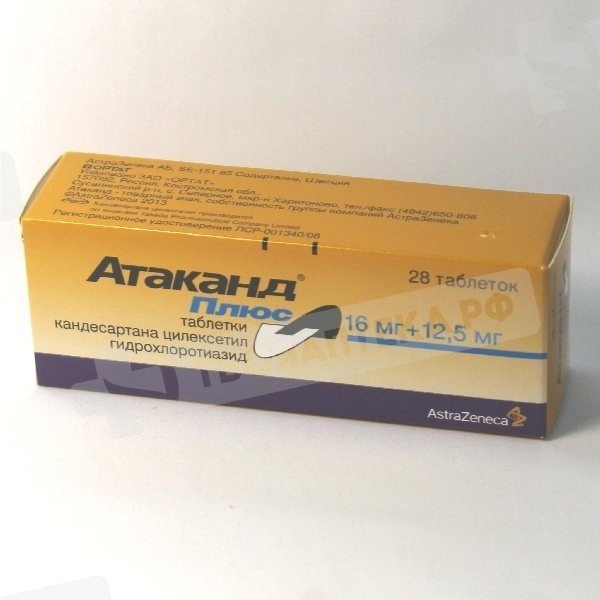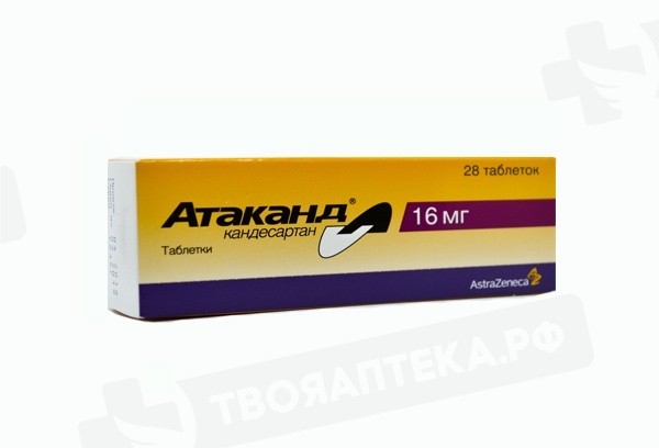 Применение кандесартана цилексетила в комбинации с препаратами, содержащими алискирен, противопоказано пациентам с сахарным диабетом (1 или 2 типа) или с умеренной или тяжелой почечной недостаточностью (скорость клубочковой фильтрации < 60 мл/мин/1,73 м2) и не рекомендовано другим пациентам (см. разделы «Противопоказания» и «Особые указания»). В фармакокинетических исследованиях было изучено сочетанное применение препарата Атаканд® с гидрохлоротиазидом, варфарином, дигоксином, пероральными контрацептивами (этинилэстрадиол/левоноргестрел), глибенкламидом, нифедипином и эналаприлом. Клинически значимого фармакокинетического взаимодействия выявлено не было. Кандесартан метаболизируется в печени в незначительной степени (изоферментом CYP2C9). Проведенные исследования по взаимодействию не выявили влияния препарата на изоферменты CYP2C9 и CYP3A4, действие на другие изоферменты системы цитохрома Р450 не изучено. Одновременное применение препарата Атаканд® с другими гипотензивными средствами потенцирует антигипертензивный эффект. Опыт применения других лекарственных средств, действующих на ренин-ангиотензин-альдостероновую систему, показывает, что сопутствующая терапия калийсберегающими диуретиками, препаратами калия, заменителями соли, содержащих калий, и другими средствами, которые могут повышать содержание калия в сыворотке крови (например, гепарин) может приводить к развитию гиперкалиемии. При сочетанном назначении препаратов лития с ингибиторами АПФ сообщалось об обратимом повышении концентрации лития в сыворотке крови и развитии токсических реакций. Подобные реакции могут встречаться и при применении антагонистов рецепторов ангиотензина II, в связи с чем рекомендуется контролировать концентрацию лития в сыворотке крови при комбинированном применении этих препаратов. При одновременном применении антагонистов рецепторов ангиотензина II и нестероидных противовоспалительных препаратов (НПВП), в том числе селективных ингибиторов циклооксигеназы-2, ацетилсалициловой кислоты (более 3 г/сутки) может отмечаться снижение антигипертензивного эффекта. Как и при применении ингибиторов АПФ, одновременное применение антагонистов рецепторов ангиотензина II и НПВП может увеличивать риск нарушения функции почек, включая острую почечную недостаточность, повышение содержания калия в сыворотке крови, особенно у пациентов со сниженной функцией почек. Следует соблюдать осторожность при одновременном применении этих препаратов, особенно у пожилых пациентов и у пациентов со сниженным объемом циркулирующей крови. Пациентам необходимо компенсировать потерю жидкости и регулярно контролировать функцию почек после начала комбинированной терапии и периодически на фоне такой терапии. Биодоступность кандесартана не зависит от приема пищи.