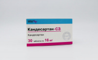 Фармакологическая группа: Антагонист рецепторов ангиотензина II. Фармакодинамика: Ангиотензин II – основной гормон ренин-ангиотензин-альдостероновой системы, который играет важную роль в патогенезе артериальной гипертензии, сердечной недостаточности и других сердечно-сосудистых заболеваний. Основными физиологическими эффектами ангиотензина II являются вазоконстрикция, стимуляция продукции альдостерона, регуляция водно-электролитного гомеостаза и стимуляция клеточного роста. Все эти эффекты опосредованы взаимодействием ангиотензина II с ангиотензиновыми рецепторами 1 типа (АТ1 рецепторы). Кандесартан – селективный антагонист рецепторов ангиотензина II 1 типа (АТ1 рецепторов). Кандесартан не ингибирует ангиотензинпревращающий фермент (АПФ), который осуществляет превращение ангиотензина I в ангиотензин II и разрушает брадикинин; не влияет на АПФ и не приводит к накоплению брадикинина или субстанции Р. При сравнении кандесартана с ингибиторами АПФ развитие кашля реже встречалось у пациентов, получавших кандесартан цилексетил. Кандесартан не связывается с рецепторами других гормонов и не блокирует ионные каналы, участвующие в регуляции функций сердечно-сосудистой системы. В результате блокирования АТ1 рецепторов ангиотензина II происходит дозозависимое повышение активности ренина, концентрации ангиотензина I, ангиотензина II и снижение концентрации альдостерона в плазме крови. Артериальная гипертензия При артериальной гипертензии кандесартан вызывает дозозависимое длительное снижение артериального давления (АД). Антигипертензивный эффект препарата обусловлен снижением общего периферического сопротивления сосудов, без изменения частоты сердечных сокращений (ЧСС). Не отмечалось случаев выраженной артериальной гипотензии после приёма первой дозы препарата, а также синдрома отмены (синдром «рикошета») после прекращения терапии. Начало антигипертензивного действия после приема первой дозы кандесартана цилексетила обычно развивается в течение 2-х часов. На фоне продолжающейся терапии препаратом в фиксированной дозе максимальное снижение АД обычно достигается в течение 4 недель и сохраняется на протяжении лечения. Кандесартан цилексетил, назначаемый один раз в сутки, обеспечивает эффективное и плавное снижение АД в течение 24 часов с незначительными колебаниями АД в интервалах между приемами очередной дозы препарата. Применение кандесартана цилексетила совместно с гидрохлоротиазидом приводит к усилению антигипертензивного эффекта. Совместное применение кандесартана цилексетила и гидрохлоротиазида (или амлодипина) хорошо переносится. Эффективность препарата не зависит от возраста и пола пациентов. Кандесартан цилексетил увеличивает почечный кровоток и не изменяет или же повышает скорость клубочковой фильтрации, тогда как почечное сосудистое сопротивление и фильтрационная фракция снижаются. Прием кандесартана цилексетила в дозе 8-16 мг в течение 12 недель не оказывает негативного влияния на концентрацию глюкозы и липидный профиль у пациентов с артериальной гипертензией и сахарным диабетом 2 типа. Клиническое действие кандесартана цилексетила на показатель заболеваемости и смертности при приёме в дозе 8-16 мг (средняя доза 12 мг) один раз в сутки исследовалось в ходе рандомизированного клиническ