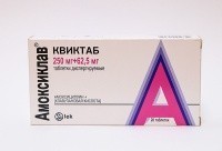 Активное вещество: 1 таблетка содержит: амоксициллина тригидрат 1004,43 мг (в пересчете на амоксициллин - 875,00 мг), клавуланат калия 148,91 мг (в пересчете на клавулановую кислоту - 125,00 мг) Вспомогательные вещества: Магния стеарат 14,50 мг, карбоксиметилкрахмал натрия 29,00 мг, кремния диоксид коллоидный 10,00 мг, целлюлоза микрокристаллическая (до 100 %) 243,16 мг; Пленочная оболочка: Опадрай 32,00 мг, диметикон 0,013-0,15 мг, масса таблетки с оболочкой 1482,013-1482,15 мг; Состав пленочной оболочки (Опадрай OY-S-7300): титана диоксид 43,00 %, гипромеллоза 5 сПз 33,00 %, гипромеллоза 15 сПз 11,00 %, макрогол 4000 6,50 %, макрогол 6000 6,50 %.