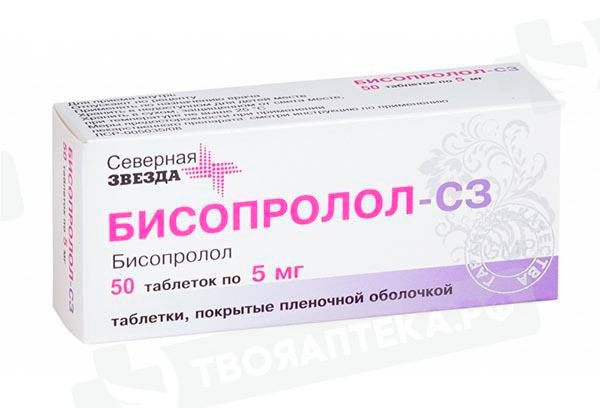 1 таблетка содержит: : бисопролола фумарат 5,000 мг