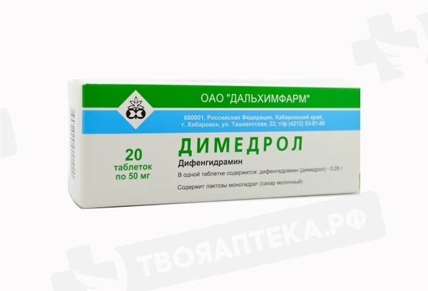 Усиливает действие этанола и лекарственных средств, угнетающих центральную нервную систему. Ингибиторы моноаминоксидазы усиливают антихолинергическую активность дифенгидрамина. Антагонистическое взаимодействие отмечается при совместном назначении с психостимуляторами. Снижает эффективность апоморфина как рвотного лекарственного средства при лечении отравления. Усиливает антихолинергические эффекты лекарственного средства с М-холиноблокирующей активностью. Дифенгидрамин потенцирует эффекты местных анестетиков. При применении с аналептиками существует риск развития судорог. Применение димедрола вместе с гипотензивными препаратами может усиливать ощущение усталости. Следует избегать одновременного применения препаратов, удлиняющих интервал QT, вызывающих гипокалиемию (например, тиазидные диуретики).