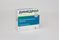 Симптомы: сухость во рту, угнетение дыхания, устойчивый мидриаз, повышение внутриглазного давления, покраснение лица, угнетение или возбуждение центральной нервной системы, депрессии, спутанность сознания, гиперкинезия, судороги, бред, тахикардия, в том числе пируэтная тахикардия, аритмия. Описан случай развития рабдомиолиза после передозировки димедрола. Лечение: симптоматическая и поддерживающая терапия при тщательном контроле дыхательной функции и артериального давления. Не разрешается применять эпинефрин и аналептики. Внутривенное капельное введение плазмозамещающих жидкостей, оксигенотерапия. Как антидот при передозировке дифенилгидрамина гидрохлорида может быть назначен физостигмин (0,02-0,06 мг/кг массы тела), если антихолинергические симптомы нарастают. В случаях передозировки физостигмина рекомендуется введение атропина. При развитии судорог, гипертермии и симптомов возбуждения ЦНС назначают парентерально диазепам.