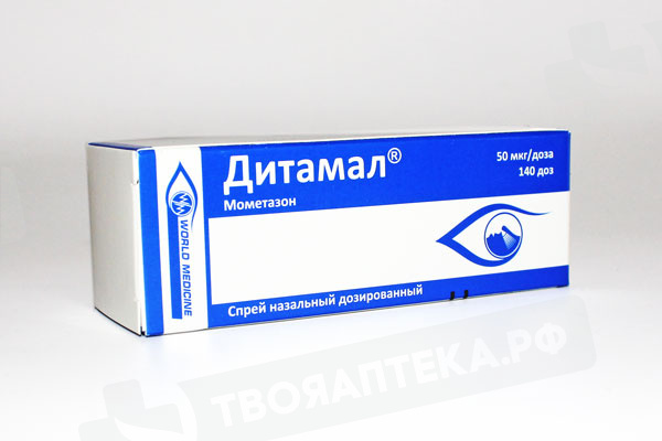 Гиперчувствительность к мометазону или любому из компонентов препарата; Недавнее оперативное вмешательство или травма носа с повреждением слизистой оболочки носовой полости - до заживления раны (в связи с ингибирующим действием глюкокортикостероидов процессы заживления); Детский возраст (при сезонном и круглогодичном аллергические ринитах - до 2 лет; при остром синусите или обострениях хронического синусита - до 12 лет; при полипозе носа - до 18 лет) - в связи с отсутствием опыта применения. С осторожностью: Дитамал® следует применять с осторожностью при туберкулезной инфекции (активной или латентной) респираторного тракта, нелеченной грибковой, бактериальной или системной вирусной инфекции, вызванной Herpes simplex с поражением глаз (в виде исключения возможно применение препарата при перечисленных инфекциях по указанию врача), наличие нелеченной местной инфекции с вовлечением в процесс слизистой оболочки носовой полости.