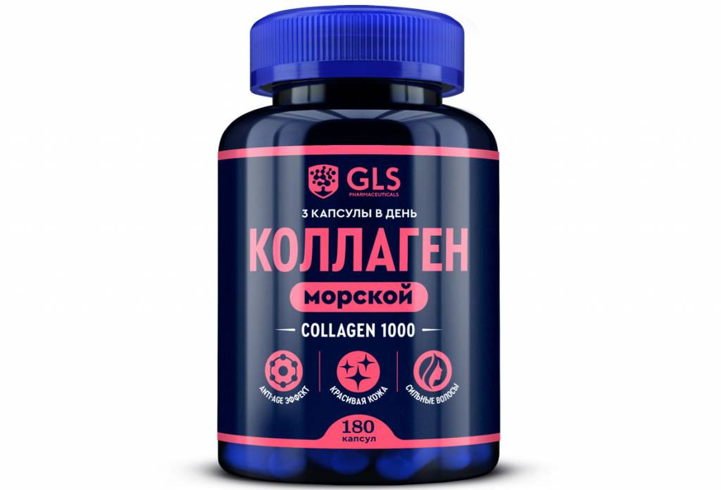 Джи Эл ЭС (GLS) Коллаген морской 1000 мг капсулы N180 БАД