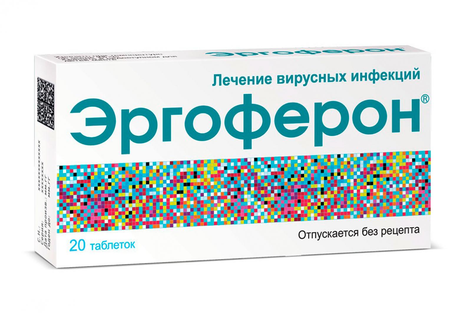 Фармакологическая группа: Противовирусное средство, антигистаминное средство Код АТХ L03AX Фармакодинамика: Спектр фармакологической активности препарата Эргоферон® включает в себя противовирусную, иммуномодулирующую, антигистаминную, противовоспалительную. Компоненты, входящие в препарат, обладают единым механизмом действия в виде повышения функциональной активности CD4 рецептора, рецепторов к интерферону гамма (ИФН гамма) и гистамину, соответственно, что сопровождается выраженным иммунотропным действием. Экспериментально доказано, что антитела к интерферону гамма: повышают экспрессию ИФН гамма, ИФН альфа/бета, а также сопряженных с ними интерлейкинов (ИЛ-2, ИЛ-4, ИЛ-10 и др.), улучшают лиганд-рецепторное взаимодействие ИФН, восстанавливают цитокиновый статус; нормализуют концентрацию и функциональную активность естественных антител к ИФН гамма, являющихся важным фактором естественной противовирусной толерантности организма; стимулируют интерферонозависимые биологические процессы: индукцию экспрессии антигенов главного комплекса гистосовместимости I, II типов и Fc-рецепторов, активацию моноцитов, стимуляцию функциональной активности NK-клеток, регуляцию синтеза иммуноглобулинов, активируя смешанный Тh1 и Тh2 иммунный ответ. Антитела к СD4, вероятно являясь аллостерическими модуляторами данного рецептора, регулируют функциональную активность CD4 рецептора, что приводит к повышению функциональной активности CD4+ лимфоцитов, нормализации иммунорегуляторного индекса CD4+/CD8+, а также субпопуляционного состава иммунокомпетентных клеток (CD3+, CD4+, CD8+, CD16+, CD20+). Антитела к гистамину модифицируют гистамин-зависимую активацию периферических и центральных H1-рецепторов и, таким образом, снижают тонус гладкой мускулатуры бронхов, уменьшают проницаемость капилляров, что приводит к сокращению длительности и выраженности ринореи, отека слизистой оболочки носа, кашля и чихания, а также уменьшению выраженности сопутствующих инфекционному процессу аллергических реакций за счет подавления высвобождения гистамина из тучных клеток и базофилов, продукции лейкотриенов, синтеза молекул адгезии, снижения хемотаксиса эозинофилов и агрегации тромбоцитов в реакциях на контакт с аллергеном. Совместное применение компонентов комплексного препарата сопровождается усилением противовирусной активности входящих в него компонентов. В ходе проводимых экспериментальных и клинических исследований установлена терапевтическая эффективность в отношении вирусов гриппа, парагриппа, риновируса, метапневмовируса, сезонных штаммов коронавирусов, бокавируса, респираторно-синцитиального вируса, респираторных и кишечных штаммов аденовируса, ротавирусов, норовирусов, астровирусов, а также неспецифическая профилактическая эффективность в отношении SARS-CoV-2. В клиническом исследовании установлено снижение риска заболевания COVID-19 в 3 раза в период проведения вакцинации между введением I и II компонентов вакцины «Гам-КОВИД-Вак» на фоне профилактического приема препарата Эргоферон®.