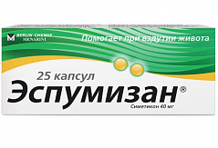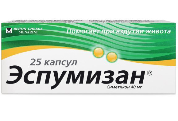 Фармакологическая группа: Ветрогонное средство Код АТХ A03AX13 Фармакодинамика: Эспумизан - препарат, уменьшающий количество газов в кишечнике. Действующее вещество - симетикон обладает поверхностной активностью свойствами и способностью снижать поверхностное натяжение на границе сред жидкость/газ. При этом происходит слияние пузырьков газа и разрушение пены, вследствие чего высвободившийся газ получает возможность всасываться и выводиться естественным путем под воздействием перистальтики кишечника. Применение препарата Эспумизан для подготовки к проведению диагностических исследований предупреждает возникновение дефектов изображения, вызываемых пузырьками газа.