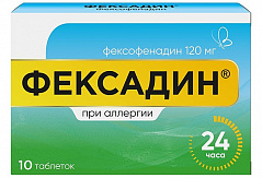 Фармакологическая группа: Противоаллергическое средство, Н1 – гистаминовых рецепторов блокатор Код ATX [R06AX26] Фармакодинамика: Фексофенадин гидрохлорид является блокатором Н1 – гистаминовых рецепторов, практически лишенным седативного действия. Фексофенадин является фармакологически активным метаболитом терфенадина. Антигистаминный эффект лекарственного средства проявляется через 1 час после приема, достигает максимума через 6 часов и продолжается в течение 24 часов. После 28 дней приема не наблюдается развития толерантности. При пероральном приеме доз от 10 мг до 130 мг существует линейная зависимость «доза-эффект». Для 24-часовой эффективности лекарственного средства (при аллергическом рините) достаточна доза 120 мг. В дозе до 240 мг препарат не вызывает изменений интервала QT.