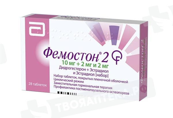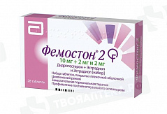 Эстрадиол. Всасывание: Всасывание эстрадиола зависит от размера частиц, микронизированный эстрадиол быстро всасывается из желудочно-кишечного тракта. Распределение: Эстроген можно обнаружить как в связанном, так и в свободном состоянии. Около 98-99 % дозы эстрадиола связывается с белками плазмы крови, из которых 30-52 % с альбумином и около 46-69 % с глобулином, связывающим половые гормоны (ГСПГ). Эстрогены проникают в грудное молоко. Метаболизм: После приема внутрь эстрадиол активно метаболизируется в печени. Основными неконъюгированными и конъюгированными метаболитами являются эстрон и эстрона сульфат, обладающие эстрогенной активностью. Эстрона сульфат может подвергаться кишечно-печеночной рециркуляции. Выведение: Эстрон и эстрадиол выводятся в конъюгированном с глюкуроновой кислотой состоянии преимущественно почками. Период полувыведения (Т1/2) составляет 10-16 ч. Зависимость концентрации эстрадиола от времени и дозы: При ежедневном приеме препарата Фемостон1 концентрация эстрадиола в плазме крови достигает постоянной величины примерно через 5 суток. Обычно данный показатель достигается в течение 8-11 суток после начала терапии. Дидрогестерон. Всасывание: После приема внутрь быстро всасывается и полностью метаболизируется. Значения времени наступления максимальной концентрации (Тmах) для дидрогестерона варьируют от 30 минут до 2,5 часов. Абсолютная биодоступность дидрогестерона - 28 %. Распределение: Более 90 % дидрогестерона и 20-а-дигидродидрогестерона (ДГД) связываются с белками плазмы крови. Метаболизм: Основным метаболитом дидрогестерона является ДГД. Максимальная концентрация ДГД в плазме крови достигается приблизительно через 1,5 ч после приема препарата. Концентрация ДГД в плазме крови существенно превышает исходную концентрацию дидрогестерона, соотношения значений площади под фармацевтической кривой «концентрация-время» (AUC) и максимальной концентрации (Сmах) ДГД к дидрогестерону составляют около 40 и 25, соответственно. Период полувыведения составляет для дидрогестерона 5-7 часов, для ДГД - 14-17 часов. Общей характерной особенностью всех метаболитов дидрогестерона является сохранение конфигурации 4,6-диен-З-она исходного вещества и отсутствие 17альфа-гидроксилирования, что обуславливает отсутствие эстрогенной и андрогенной активности. Выведение: Полностью дидрогестерон выводится через 72 ч. В среднем, 63 % от принятой дозы выводится почками. Общий плазменный клиренс - 6,4 л/мин. ДГД определяется в моче преимущественно в виде конъюгатов глюкуроновой кислоты. Зависимость концентрации дидрогестерона от времени и дозы: Для препарата характерна линейная фармакокинетика при одно- и многократном приеме внутрь в диапазоне доз от 2,5 мг до 10 мг. Сравнение кинетики разовой и многократных доз показывает, что фармакокинетические свойства дидрогестерона и ДГД не меняются при приеме многократных доз. Равновесная концентрация дидрогестерона достигается через 3 суток после начала приема препарата.