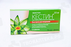 Фармакологическая группа: Противоаллергическое средство-Н1 гистаминовых рецепторов блокатор Код АТХ R06AX22 Фармакодинамика: Эбастин является антагонистом Н1- гистаминовых рецепторов длительного действия. После приема препарата внутрь выраженное противоаллергическое действие начинается через 1 ч и длится более 48 ч. После 5-дневного курса лечения препаратом Кестин антигистаминная активность сохраняется в течение 72 ч за счет действия активных метаболитов. При длительном приеме сохраняется высокий уровень блокады периферических Н1-гистаминовых рецепторов без развития тахифилаксии. Препарат не оказывает выраженного антихолинергического и седативного эффекта, не проникает через гематоэнцефалический барьер. Не отмечено влияния препарата Кестин на интервал ОТ на ЭКГ в дозе 100 мг - дозе, превышающей рекомендованную суточную дозу (20 мг) в 5 раз.