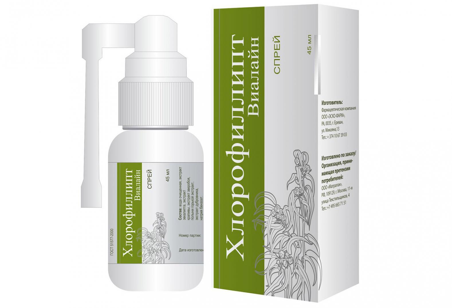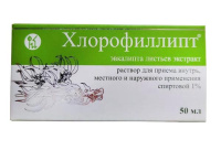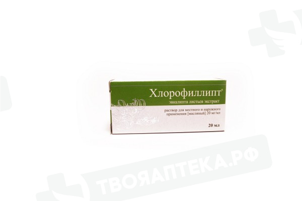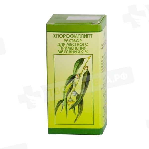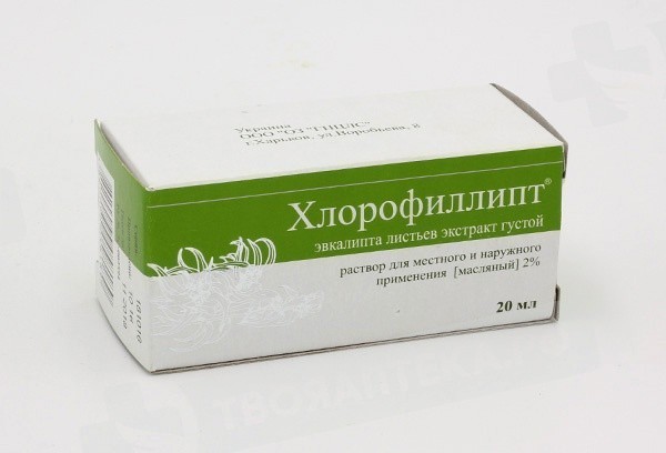 100 мл раствора содержит: Хлорофиллипта экстракта густого (Эвкалипта листьев экстракт) с антибактериальной активностью в концентрации 12,5 мкг в 1 мл среды – 2,0 г