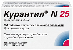 Ксантиновые производные (кофе, чай) могут ослаблять сосудорасширяющее действие дипиридамола. Дипиридамол при одновременном применении может усиливать действие антикоагулянтов и ацетилсалициловой кислоты. Дипиридамол может усиливать действие гипотензивных препаратов. Ослабляет свойства ингибиторов холинэстеразы. Цефалоспорины усиливают антитромботическое действие дипиридамола. Антациды уменьшают максимальную концентрацию дипиридамола из-за снижения абсорбции. Влияние на способность к вождению автотранспорта и работу с механизмами В связи с возможным снижением артериального давления в период приема препарата Курантил® N 25 способность к концентрации внимания и быстрота психомоторных реакций у пациентов могут снижаться. Поэтому в период лечения препаратом Курантил® N 25 следует соблюдать осторожность при управлении транспортными средствами и занятия потенциально опасными видами деятельности, требующими повышенной концентрации внимания и быстроты психомоторных реакций.