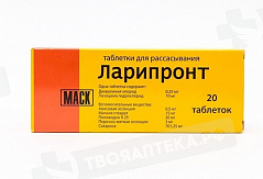 Активное вещество: 1 таблетка содержит: деквалиния хлорид 0,25 мг; лизоцима гидрохлорид 10,00 мг Вспомогательные вещества: Повидон (поливидон К 25, поливинилпирролидон) 20,00 мг, магния стеарат 15,00 мг, анисовая ароматическая эссенция 89617 0,50 мг, перечно-мятная ароматическая эссенция 89664 3,00 мг, сахароза 701,25 мг