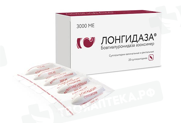 Активное вещество: 1 суппозиторий содержит: Бовгиалуронидаза азоксимер (Лонгидаза®) – 3000 МЕ Вспомогательные вещества: Масло какао – до получения суппозитория массой 1,3 г