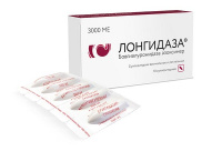 Фармакологическая группа: Ферментное средство Код АТХ: V03AX Фармакодинамика: Лонгидаза® обладает гиалуронидазной (ферментативной) активностью пролонгированного действия, хелатирующими, антиоксидантными, иммуномодулирующими и умеренно выраженными противовоспалительными свойствами. Пролонгирование действия фермента достигается ковалентным связыванием фермента с физиологически активным полимерным носителем (азоксимер). Лонгидаза® проявляет противофиброзные свойства, ослабляет течение острой фазы воспаления, регулирует (повышает или снижает в зависимости от исходного уровня) синтез медиаторов воспаления (интерлейкина-1 и фактора некроза опухоли - альфа), повышает гуморальный иммунный ответ и резистентность организма к инфекции. Выраженные противофиброзные свойства Лонгидазы обеспечиваются конъюгацией гиалуронидазы с носителем, что значительно увеличивает устойчивость фермента к денатурирующим воздействиям и действию ингибиторов: ферментативная активность Лонгидазы сохраняется при нагревании до 37 °С в течение 20 суток, в то время как нативная гиалуронидаза в этих же условиях утрачивает свою активность в течение суток. В препарате Лонгидаза® обеспечивается одновременное локальное присутствие фермента гиалуронидазы и носителя, способного связывать освобождающиеся при гидролизе компонентов матрикса ингибиторы фермента и стимуляторы синтеза коллагена (ионы железа, меди, гепарин и др.). Благодаря указанным свойствам Лонгидаза® обладает не только способностью деполимеризовать матрикс соединительной ткани в фиброзно-гранулематозных образованиях, но и подавлять обратную регуляторную реакцию, направленную на синтез компонентов соединительной ткани. Специфическим субстратом тестикулярной гиалуронидазы являются гликозаминогликаны (гиалуроновая кислота, хондроитин, хондроитин-4-сульфат, хондроитин-6-сульфат), составляющие основу матрикса соединительной ткани. В результате деполимеризации (разрыва связи между С1 ацетилглюкозамина и С4 глюкуроновой или индуроновой кислот) гликозаминогликаны изменяют свои основные свойства: снижается вязкость, уменьшается способность связывать воду, ионы металлов, временно увеличивается проницаемость тканевых барьеров, облегчается движение жидкости в межклеточном пространстве, увеличивается эластичность соединительной ткани, что проявляется в уменьшении отечности ткани, уплощении рубцов, увеличении объема движения суставов, уменьшении контрактур и предупреждении их формирования, уменьшении спаечного процесса. Биохимическими, иммунологическими, гистологическими и электронно-микроскопическими исследованиями доказано, что Лонгидаза® не повреждает нормальную соединительную ткань, а вызывает деструкцию измененной по составу и структуре соединительной ткани в области фиброза. Лонгидаза® не обладает мутагенным, эмбриотоксическим, тератогенным и канцерогенным действием. Препарат хорошо переносится пациентами, не отмечено местных и общих аллергических реакций. Применение Лонгидазы в терапевтических дозах во время или после оперативного лечения не вызывает ухудшение течения послеоперационного периода или прогрессирования инфекционного процесса; не замедляет восстановление костной ткани.