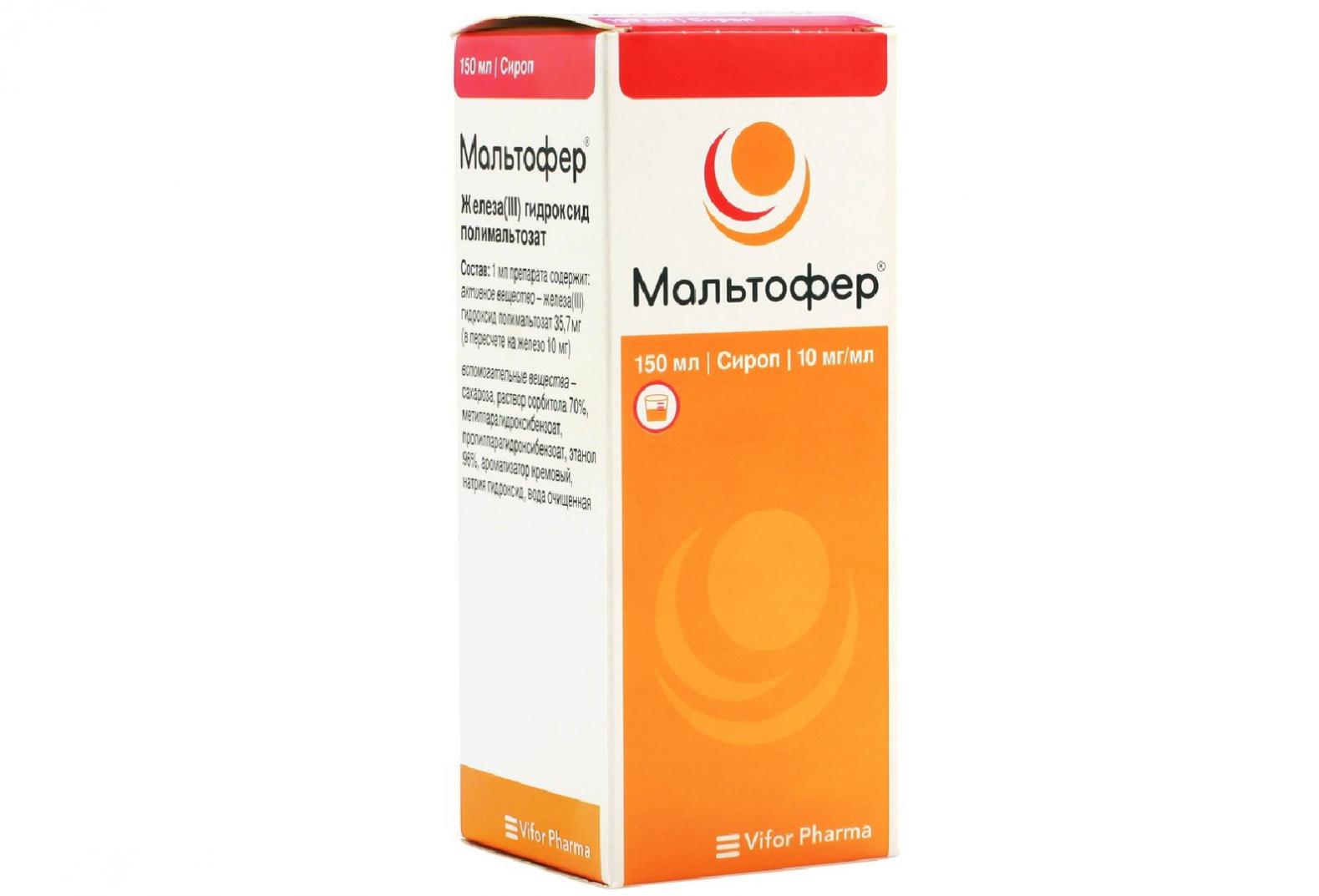 Фармакологическая группа: Железа препарат. Фармакодинамика: В железа(III) гидроксид полимальтозате многоядерный гидроксид железа(III) снаружи окружен множеством ковалентно связанных молекул полимальтозата, что даёт общую среднюю молекулярную массу приблизительно 50 кДа. Структура многоядерного ядра железа(III) гидроксид полимальтозата сходна со структурой ядра белка ферритина – физиологического депо железа. Железа(III) гидроксид полимальтозат стабилен и в физиологических условиях не выделяет большого количества ионов железа. Из-за размера степень диффузии железа(III) гидроксид полимальтозата через слизистую оболочку приблизительно в 40 раз меньше по сравнению с комплексом шестиводного железа(II). Железо из железа(III) гидроксид полимальтозата активно всасывается в кишечнике. Эффективность препарата Мальтофер® для нормализации содержания гемоглобина и восполнения депо железа была продемонстрирована в многочисленных рандомизированных контролируемых клинических исследованиях с использованием плацебо-контроля или активного препарата сравнения, проведенных у взрослых и детей с различным статусом депо железа.