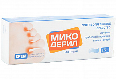 Фармакологическая группа: Противогрибковое средство Код АТХ D01AE22 Фармакодинамика: Микодерил® - противогрибковый препарат для наружного применения, действующим веществом которого является нафтифин. Нафтифин – противогрибковое средство, относящееся к классу алиламинов. Механизм действия связан с ингибированием сквален-2,3-эпоксидазы, что приводит к снижению образования эргостерола, входящего в состав клеточной стенки гриба. Нафтифин, влияя на скваленэпоксидазу, не затрагивает систему цитохрома Р-450. Нафтифин активен в отношении дерматофитов, таких как Trichophyton, Epidermophyton, Microsporum, дрожжевых и дрожжеподобных грибов (Candida spp., Pityrosporum), плесневых грибов (Aspergillus) и других грибов (например Sporothrix schenckii). В отношении дерматофитов и аспергилл нафтифин действует фунгицидно. В отношении дрожжевых грибов препарат проявляет фунгицидную или фунгистатическую активность в зависимости от штамма микроорганизма. Нафтифин обладает антибактериальной активностью в отношении грамположительных и грамотрицательных микроорганизмов, вызывающих вторичные бактериальные инфекции. Нафтифин обладает противовоспалительным действием, которое способствует быстрому исчезновению симптомов воспаления, особенно зуда.