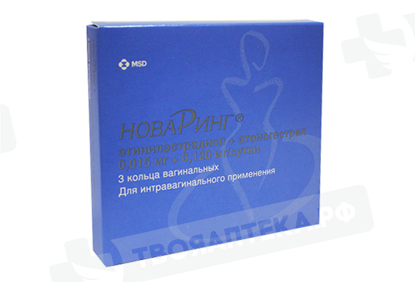 Всасывание Этоногестрел, высвобождающийся из вагинального кольца НоваРинг®, быстро всасывается через слизистую оболочку влагалища. Максимальная концентрация этоногестрела в плазме крови, составляющая около 1700 пг/мл, достигается примерно через 1 неделю после введения кольца. Концентрации в плазме крови изменяются в небольшом диапазоне и медленно снижаются примерно до 1600 пг/мл через 1 неделю, 1500 пг/мл через 2 недели и 1400 пг/мл через 3 недели применения. Абсолютная биодоступность составляет около 100%, что превышает биодоступность при пероральном приеме этоногестрела. По результатам измерений концентраций этоногестрела в области шейки матки и внутри матки у женщин, применяющих препарат НоваРинг®, и женщин, применяющих пероральные контрацептивы, содержащие 0,150 мг дезогестрела и 0,020 мг этинилэстрадиола, наблюдаемые значения концентраций этоногестрела были сопоставимы. Распределение Этоногестрел связывается с альбумином плазмы крови и глобулином, связывающим половые гормоны (ГСПГ). Кажущийся объем распределения этоногестрела составляет 2,3 л/кг. Метаболизм Биотрансформация этоногестрела происходит известными путями метаболизма половых гормонов. Кажущийся клиренс плазмы крови составляет около 3,5 л/ч. Прямого взаимодействия с этинилэстрадиолом, принимаемым одновременно, не выявлено. Выведение Концентрации этоногестрела в плазме крови снижаются в две фазы. В терминальную фазу период полувыведения составляет примерно 29 ч. Этоногестрел и его метаболиты выводятся почками и через кишечник с желчью в соотношении около 1,7:1. Период полувыведения метаболитов составляет примерно 6 суток. Этинилэстрадиол Всасывание Этинилэстрадиол, высвобождающийся из вагинального кольца НоваРинг®, быстро всасывается через слизистую оболочку влагалища. Максимальная концентрация в плазме крови, составляющая около 35 пг/мл, достигается через 3 дня после введения кольца и снижается до 19 пг/мл через 1 неделю, до 18 пг/мл через 2 недели и 18 пг/мл через 3 недели применения. Абсолютная биодоступность составляет примерно 56% и сопоставима с таковой при пероральном приеме этинилэстрадиола. По результатам измерений концентраций этинилэстрадиола в области шейки матки и внутри матки у женщин, применяющих препарат НоваРинг®, и женщин, применяющих пероральные контрацептивы, содержащие 0,150 мг дезогестрела и 0,020 мг этинилэстрадиола, наблюдаемые значения концентраций этинилэстрадиола были сопоставимы. Концентрация этинилэстрадиола изучалась в ходе сравнительного рандомизированного исследования препарата НоваРинг® (суточное высвобождение этинилэстрадиола во влагалище 0,015 мг), трансдермального пластыря (норэлгестромин / этинилэстрадиол; суточное высвобождение этинилэстрадиола 0,020 мг) и КОК (левоноргестрел / этинилэстрадиол; суточное высвобождение этинилэстрадиола 0,030 мг) во время одного цикла у здоровых женщин. Системное воздействие этинилэстрадиола в течение месяца (AUC 0-∞) для препарата НоваРинг® было статистически достоверно ниже, чем у пластыря и КОК, и составило 10,9, 37,4 и 22,5 нг·ч/мл соответственно. Распределение Этинилэстрадиол неспецифично связывается с альбумином плазмы крови. Кажущийся объем распределения составляет около 15 л/кг. Метаболизм Этинилэстрадиол метаболизируется путем ароматического гидроксилирования. В ходе его биотрансформации