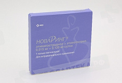 Препарат НоваРинг® – это гормональное комбинированное контрацептивное средство, содержащее этоногестрел и этинилэстрадиол. Этоногестрел является прогестагеном (производным 19-нортестостерона), который с высоким сродством связывается с рецепторами прогестерона в органах-мишенях. Этинилэстрадиол является эстрогеном и широко применяется для производства контрацептивных средств. Контрацептивный эффект препарата НоваРинг® обусловлен комбинацией различных факторов, наиболее важным из которых является подавление овуляции. Эффективность В клинических исследованиях было установлено, что индекс Перля (показатель, отражающий частоту наступления беременности у 100 женщин в течение 1 года контрацепции) у женщин в возрасте от 18 до 40 лет для препарата НоваРинг® составил 0,96 (95% ДИ: 0,64-1,39) и 0,64 (95% ДИ: 0,35-1,07) при статистическом анализе всех рандомизированных участниц (ITT-анализ) и анализе участниц исследований, завершивших их согласно протоколу (PP-анализ), соответственно. Данные значения были сходны со значениями индексов Перля, полученными при сравнительных исследованиях комбинированных пероральных контрацептивов (КОК), содержащих левоноргестрел /этинилэстрадиол (0,150/0,030 мг) или дроспиренон/этинилэстрадиол (3/0,30 мг). На фоне применения препарата НоваРинг® цикл становится более регулярным, уменьшается болезненность и интенсивность менструальноподобного кровотечения, что способствует снижению частоты развития железодефицитных состояний. Имеются данные о снижении риска возникновения рака эндометрия и яичников на фоне применения препарата. Характер кровотечений Сравнение особенностей характера кровотечений на протяжении одного года у 1000 женщин, применявших препарат НоваРинг® и КОК, содержащие левоноргестрел / этинилэстрадиол (0,150/0,030 мг), показало значительное снижение частоты «прорывных» кровотечений или мажущих кровянистых выделений при применении препарата НоваРинг® по сравнению с КОК. Кроме того, частота случаев, когда кровотечения возникали только во время перерыва в применении препарата, была значительно выше среди женщин, применявших препарат НоваРинг®. Влияние на минеральную плотность костей Сравнительное двухлетнее исследование влияния препарата НоваРинг® (n=76) и негормональной внутриматочной спирали (n=31) не выявило влияния на минеральную плотность костной ткани у женщин. Дети Безопасность и эффективность препарата НоваРинг® для девочек-подростков в возрасте до 18 лет не изучалась.