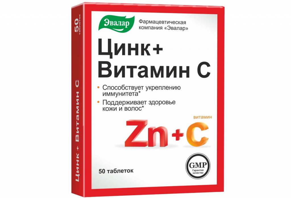 Цинк+ Витамин С таблетки N50 (Эвалар) БАД