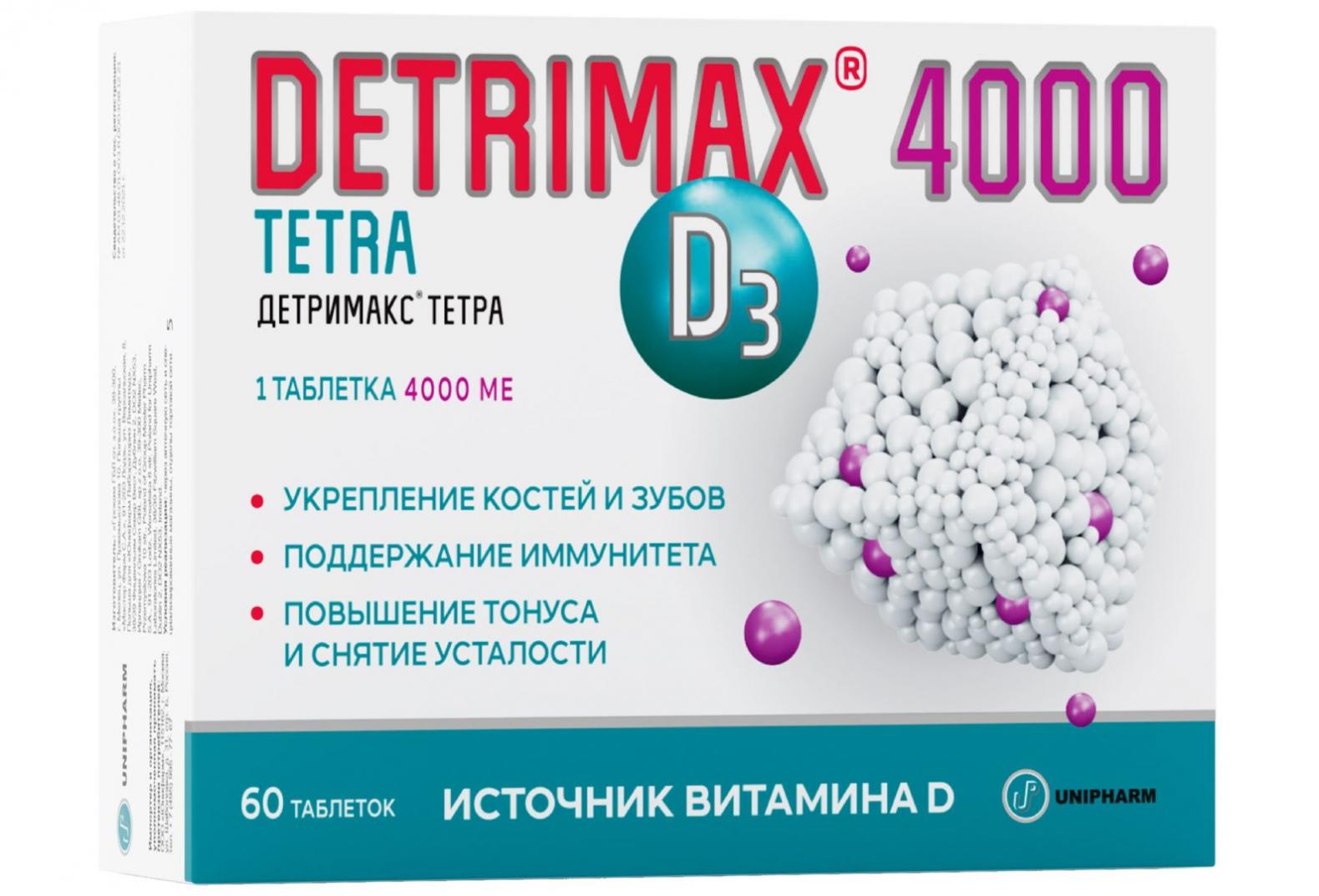 Детримакс тетра 4000 МЕ таблетки покрытые оболочкой N60 БАД