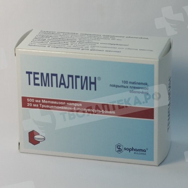 Внутрь. Таблетки принимают после еды, запивая водой. Дозировка Доза зависит от выраженности боли, и от индивидуальной чувствительности к препарату. Взрослые Обычная доза - по 1 таблетке 1-3 раза в день. Максимальная однократная доза не должна превышать 1 таблетку. Максимальная суточная доза составляет 4 таблетки. При стоматологических процедурах: по 1 таблетке за 30 мин до вмешательства. Дети старше 15-летнего возраста По 1 таблетке в день. Максимальная суточная доза - 2 таблетки. Пациенты старше 65 лет Обычно не требуется уменьшение дозы. У пациентов с возрастными нарушениями функций почек и печени лечение препаратом Темпалгин должно быть непродолжительным. Максимальная суточная доза 2 таблетки. Пациенты с нарушением функции печени У таких пациентов возможно увеличение времени полувыведения метаболитов метамизола натрия. У пациентов с умеренными или тяжелыми поражениями печени рекомендуется лечение 1/2 рекомендуемой дозы для взрослых (максимальная суточная доза 2 таблетки). Пациенты с нарушением функции почек Метамизол натрия и его метаболиты выводятся почками. У пациентов с поражением функции почек лечение препаратом Темпалгин следует проводить, используя 1/2 рекомендуемой дозы для взрослых (максимальная суточная доза 2 таблетки). Продолжительность лечения Лечение препаратом Темпалгин не должно длиться более 3-5 дней. Его применение на более длительный период времени или в более высоких дозах возможно только после консультации с врачом.