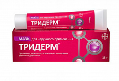 Фармакологическая группа: Противовоспалительное, антибактериальное, противогрибковое средство Код АТХ D07XC01 Фармакодинамика: Комбинированный препарат для наружного применения. Крем Тридерм сочетает в себе противовоспалительный, противозудный, противоаллергический и антиэкссудативный эффект бетаметазона дипропионата с противогрибковой активностью клотримазола и широким антибактериальным действием гентамицина сульфата. Клотримазол оказывает противогрибковое действие за счет нарушения синтеза эргостерина, являющегося составной частью клеточной мембраны грибов. Активен в отношении Trichophyton rubrum, Trichophyton mentagrophytes, Epidermophyton floccosum, Microsporum canis, Candida albicans, Pityrosporum orbiculare (Malassezia furtur). Гентамицин является антибиотиком широкого спектра действия из группы аминогликозидов. Действует бактерицидно и обеспечивает высокоэффективное местное лечение первичных и вторичных бактериальных инфекций кожи. Активен в отношении грамотрицательных бактерий: Pseudomonas aeruginosa, Aerobacter aerogenes, Escherichia coli, Proteus vulgaris и Klebsiella pneumoniae; грамположительных бактерий: Staphylococcus aureus (коагулаза-положительные, коагулаза-отрицательные и некоторые штаммы, продуцирующие пенициллиназу).