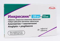 Влияние других лекарственных препаратов на алоглиптин Алоглиптин в основном выводится из организма в неизмененном виде почками и в незначительной степени метаболизируется ферментной системой цитохрома (CYP) Р450. В исследованиях по взаимодействию с другими лекарственными средствами на фармакокинетику алоглиптина не оказывали клинически значимого эффекта следующие препараты: гемфиброзил (ингибитор CYP2С8/9), флюконазол (ингибитор CYP2С9), кетоконазол (ингибитор CYP3А4), циклоспорин (ингибитор p-гликопротеина), ингибитор а-гликозидазы, дигоксин, метформин, циметидин, пиоглитазон или аторвастатин Влияние алоглиптина на другие лекарственные препараты В исследованиях in vitro показано, что алоглиптин не ингибирует и не индуцирует изоформы CYP 450 в концентрациях, достигаемых при приеме алоглиптина в рекомендуемой дозе 25 мг. Взаимодействия с изоформами CYP 450 не ожидается и выявлено не было. В исследованиях in vitro выявлено, что алоглиптин не является ни субстратом, ни ингибитором ОАТ1, ОАТ3 и ОСТ2. Кроме того, данные клинических исследований не указывают на взаимодействие с ингибиторами или субстратами р-гликопротеина. В клинических исследованиях по взаимодействию с другими лекарственными средствами алоглиптин не оказывал клинически значимого влияния на фармакокинетику следующих препаратов: кофеина, (R)- и (S)-варфарина, пиоглитазона, глибенкламида, толбутамида, декстрометорфана, аторвастатина, мидазолама, пероральных контрацептивов (норэтиндрон и этинилэстрадиол), дигоксина, фексофенадина, метформина или циметидина. Основываясь на этих данных, алоглиптин не ингибирует изоферменты системы цитохрома CYP1А2, CYP3А4, CYP2D6, CYP2С9, р-гликопротеин и ОСТ2. Алоглиптин не оказывал воздействия на протромбиновый индекс или Международное нормализованное отношение (МНО) у здоровых добровольцев при одновременном приеме с варфарином. Прием алоглиптина в комбинации с метформином, или пиоглитазоном (тиазолидиндион), или ингибитором альфа-гликозидазы, или глибенкламидом (производное сульфонилмочевины) 10 не показал клинически значимых фармакокинетических взаимодействий.