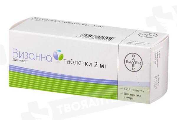 Фармакологическая группа: Гестаген. Фармакологические свойства: Препарат для лечения эндометриоза. Фармакодинамика: Диеногест является производным нортестостерона, характеризуясь антиандрогенной активностью, составляющей примерно одну треть от активности ципротерона ацетата. Диеногест связывается с рецепторами прогестерона в матке человека, обладая лишь 10% относительного сродства прогестерона. Несмотря на низкое сродство к рецепторам прогестерона, диеногест характеризуется мощным прогестагенным эффектом in vivo. Диеногест не обладает существенной андрогенной, минералокортикоидной или глюкокортикоидной активностью in vivo. Диеногест воздействует на эндометриоз, путем подавления трофических эффектов эстрогенов в отношении аутопического и эктопического эндометрия, вследствие снижения продукции эстрогенов в яичниках и уменьшения их концентрации в плазме. При продолжительном применении вызывает начальную децидуализацию ткани эндометрия с последующей атрофией эндометриоидных очагов. Дополнительные свойства диеногеста, такие как иммунологический и антиангиогенный эффекты, как представляется, способствуют его подавляющему воздействию на пролиферацию клеток. Преимущество препарата Визанна по сравнению с плацебо в отношении тазовой боли, ассоциированной с эндометриозом, было продемонстрировано у 102 пациенток в клиническом исследовании продолжительностью 3 месяца. Тазовую боль, ассоциированную с эндометриозом, оценивали по визуальной аналоговой шкале (ВАШ, 0 – 100 мм). Через 3 месяца лечения препаратом Визанна было показана статистически достоверная разница в сравнении с плацебо (95% ДИ: 6,4-18,1; p < 0,0001), а также клинически значимое уменьшение боли по сравнению с исходными показателями (среднее = 27,4 мм ± 22,9). Через 3 месяца лечения у 37,3% пациенток отмечено уменьшение интенсивности тазовой боли, ассоциированной с эндометриозом, на 50% и более без повышения дозы дополнительного обезболивающего средства, которое они принимали (плацебо: 19,8 %); у 18,6% пациенток отмечено уменьшение интенсивности тазовой боли, ассоциированной с эндометриозом, на 75% и более без повышения дозы дополнительного обезболивающего средства, которое они принимали (плацебо: 7,3 %). В продленной открытой фазе данного плацебо-контролируемого исследования наблюдалось устойчивое уменьшение тазовой боли, ассоциированной с эндометриозом, при продолжительности лечения до 15 месяцев (средний показатель уменьшения интенсивности боли в конце периода применения препарата Визанна = 43,2 ± 21,7 мм). Кроме того, эффективность препарата Визанна в лечении тазовой боли, ассоциированной с эндометриозом, продемонстрировало 6-месячное сравнительное исследование эффективности препарата Визанна по сравнению с лейпрорелина ацетатом (ЛА), агонистом гонадотропин-рилизинг гормона (ГнРГ), в котором приняло участие 120 пациенток, получавших лечение препаратом Визанна. Тазовую боль, ассоциированную с эндометриозом, оценивали по визуальной аналоговой шкале (ВАШ, 0 – 100 мм). В обеих группах наблюдалось клинически значимое уменьшение боли по сравнению с исходными показателями (Визанна: 47,5 ± 28,8 мм; ЛА: 46,0 ± 24,8 мм). Была продемонстрирована сопоставимая эффективность диеногеста в сравнении с ЛА (p<0,0001) на основании предварительно установленного предела наименьшей эффективности, равного 15 